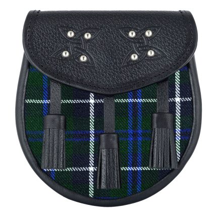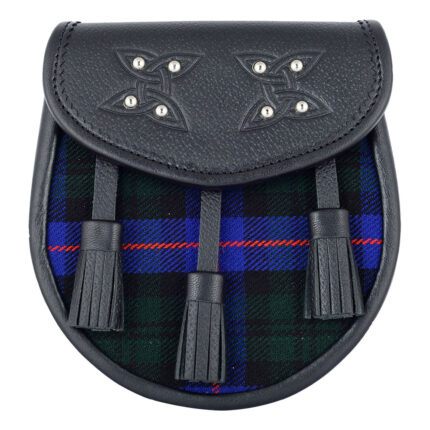 Scottish Sporran Blue Douglas Tartan Black Leather