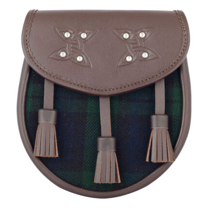 Scottish Sporran Black Watch Tartan Brown Leather