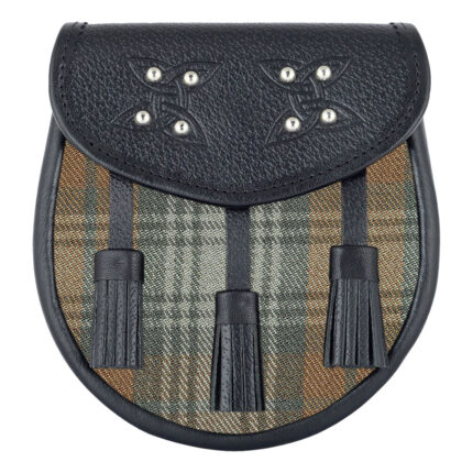 Scottish Sporran Brown Watch Tartan Black Leather