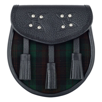 Scottish Sporran Black Watch Tartan Black Leather