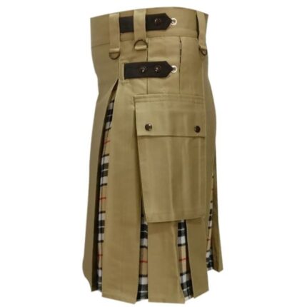 - Tartan fabric. Stylish combination of original leather straps and cargo pockets kilt with stunning look for stylish people.