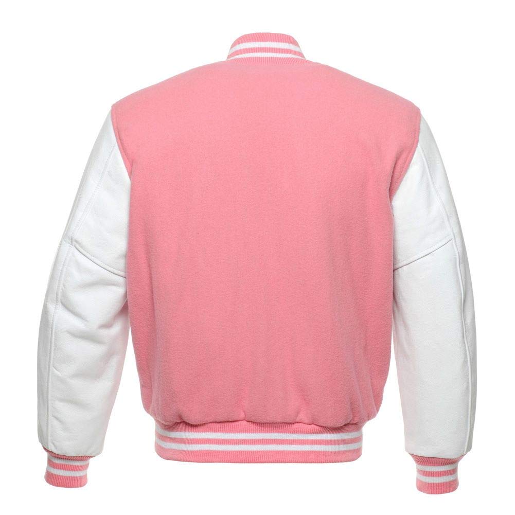 Baseball Jacket Pink Wool & Leather Sleeves Letterman Varsity Jacket