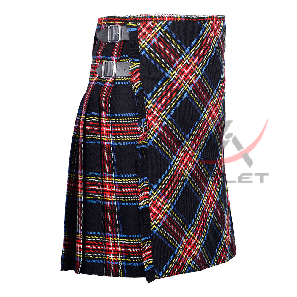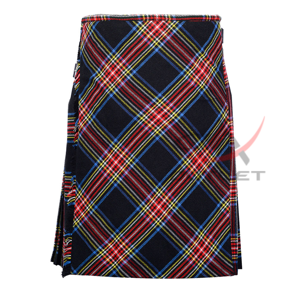 Bias Cut Black Stewart Tartan Traditional 8 Yard Scottish Kilt