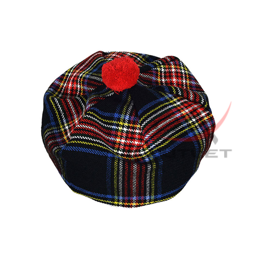 Black Stewart Tartan Tam o’ Shatner Tammy Hat Flat Bonnet Our acrylic tam o’ shanter (cap) / military bonnet is a traditional piece of Scottish headwear that takes its name from the famous Robert burns poem.