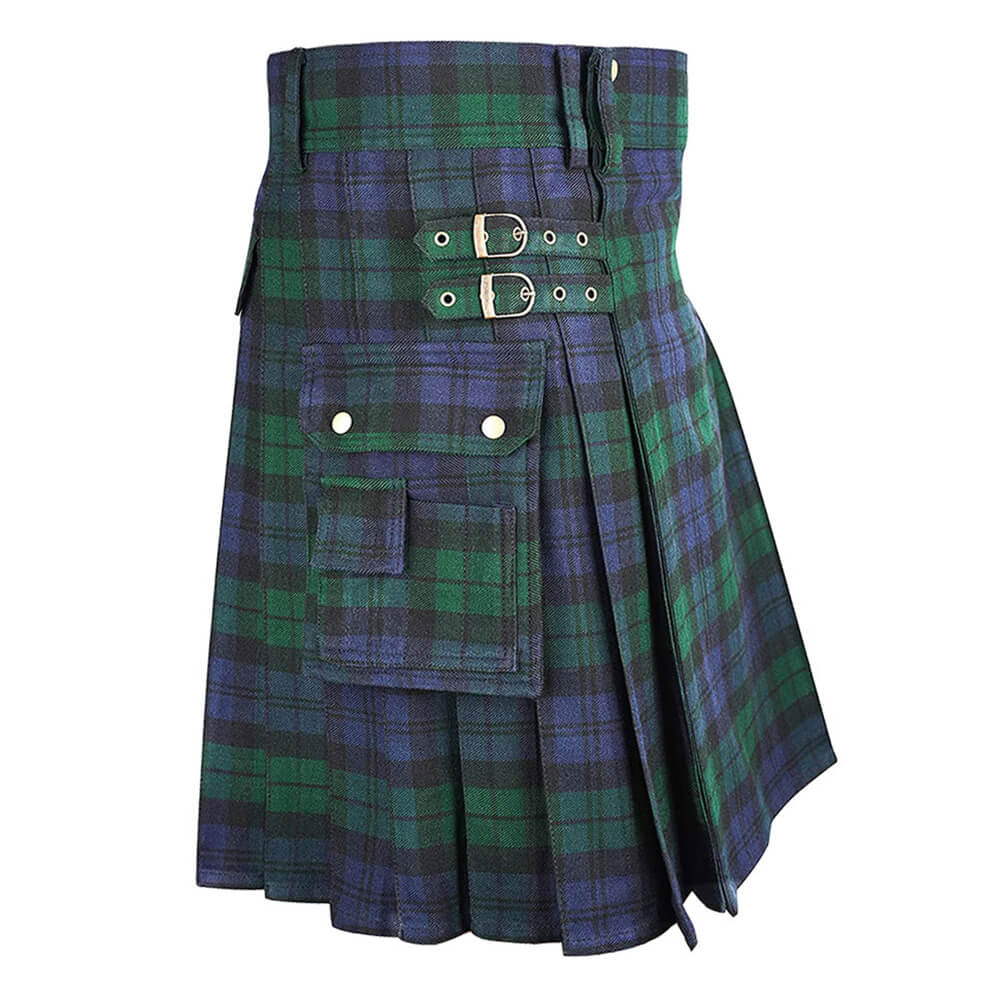 Introducing our Scottish modern utility kilt, a symbol of pride, tradition, and craftsmanship. The Scottish Black Watch Tartan Kilt with modern utility features is a fashionable and functional choice for those who wish to embrace the rich Scottish heritage while enjoying the practicality of a contemporary garment. Whether for formal events, casual outings, or even everyday wear, this kilt provides a unique blend of tradition and modernity.