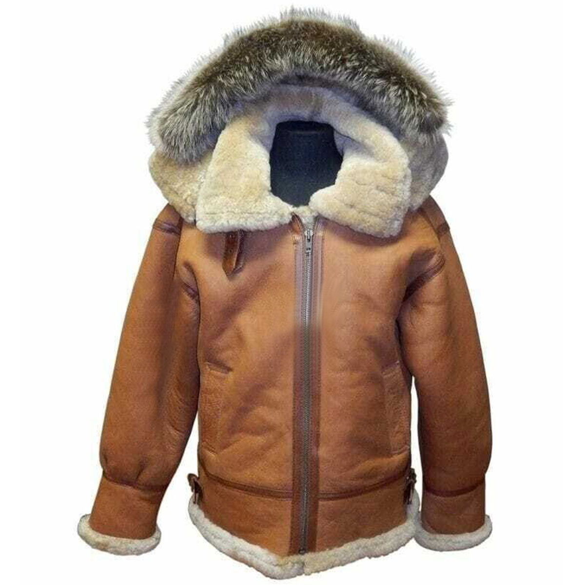 Bomber Hooded Leather Jacket Shearling RAF B3 for Men