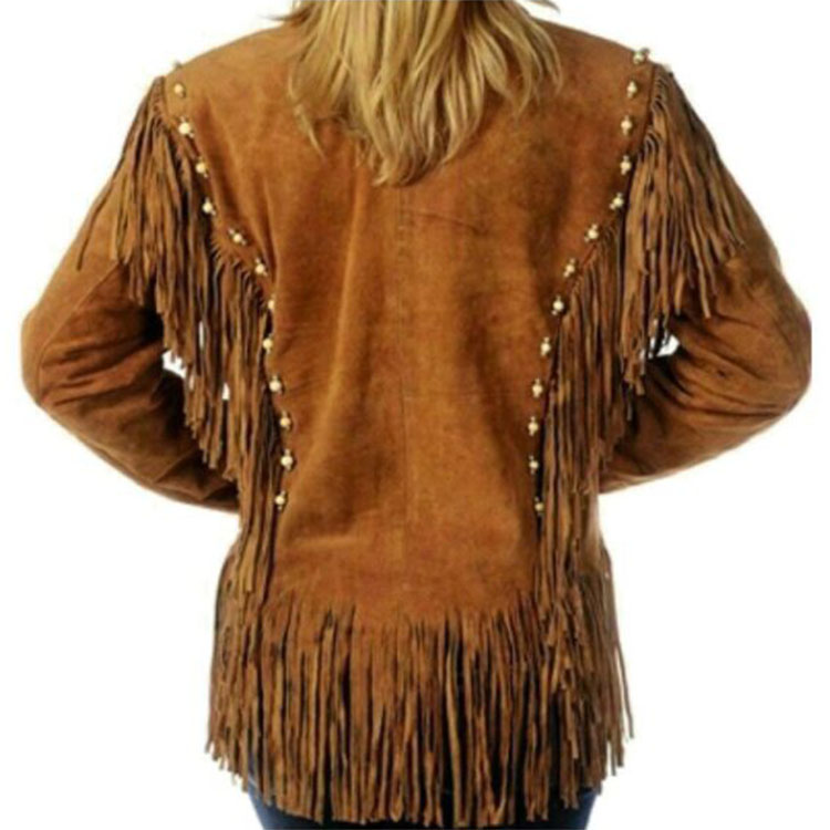 Cowgirl Bone & Fringed Jacket Saddle up in style with our Cowgirl Suede Leather Western Jacket – a timeless blend of rugged charm and feminine flair. Crafted from premium-quality suede leather, this jacket features classic western detailing like fringe accents, pointed yokes, and snap-button closures. Whether you’re headed to a rodeo, concert, or just channeling rustic chic on the streets, this piece delivers unmatched authenticity and comfort. Pair it with boots and denim for the ultimate cowgirl look.