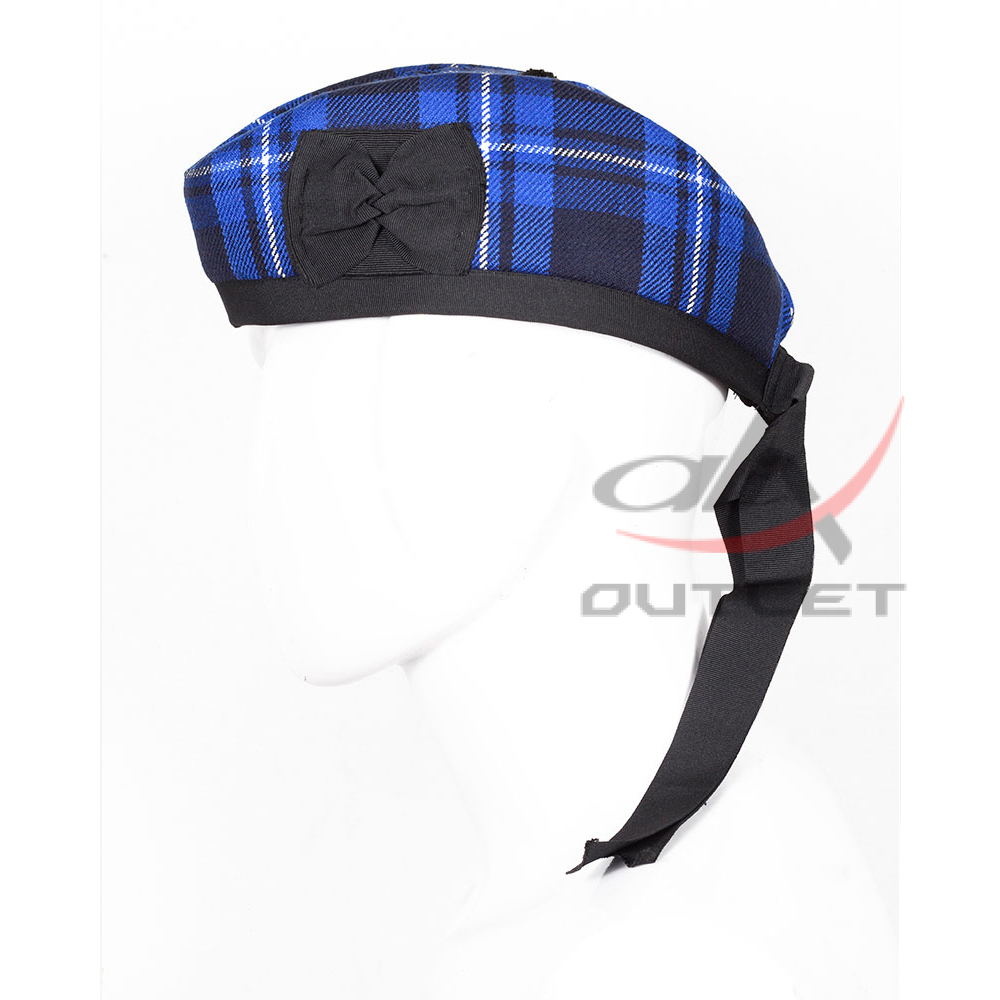 Glengarry Hat Ramsey Blue Tartan Scottish Our Glengarry bonnets are available in a variety of clan tartans & colors, each Glengarry hat is decorated with a toorie on the top, along with a rosette to the side and ribbons attached to the rear.