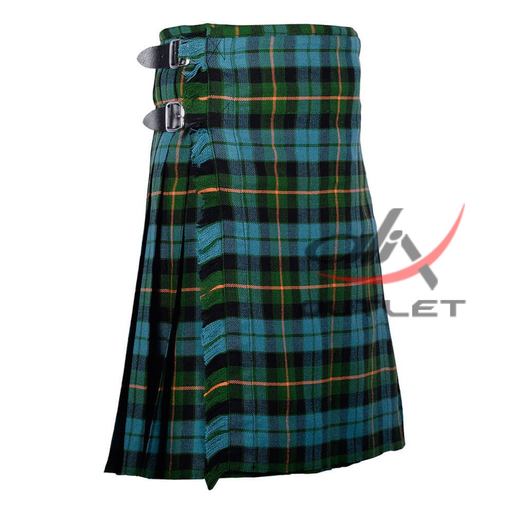 Gunn Ancient Tartan 8 Yard Kilt for Men Traditional Scottish Kilt. Traditional 8-yard tartan highlander kilt is a knee-length garment made of wool tartan. It is typically made with 8 yards of fabric, which is pleated and folded to create its distinctive shape.