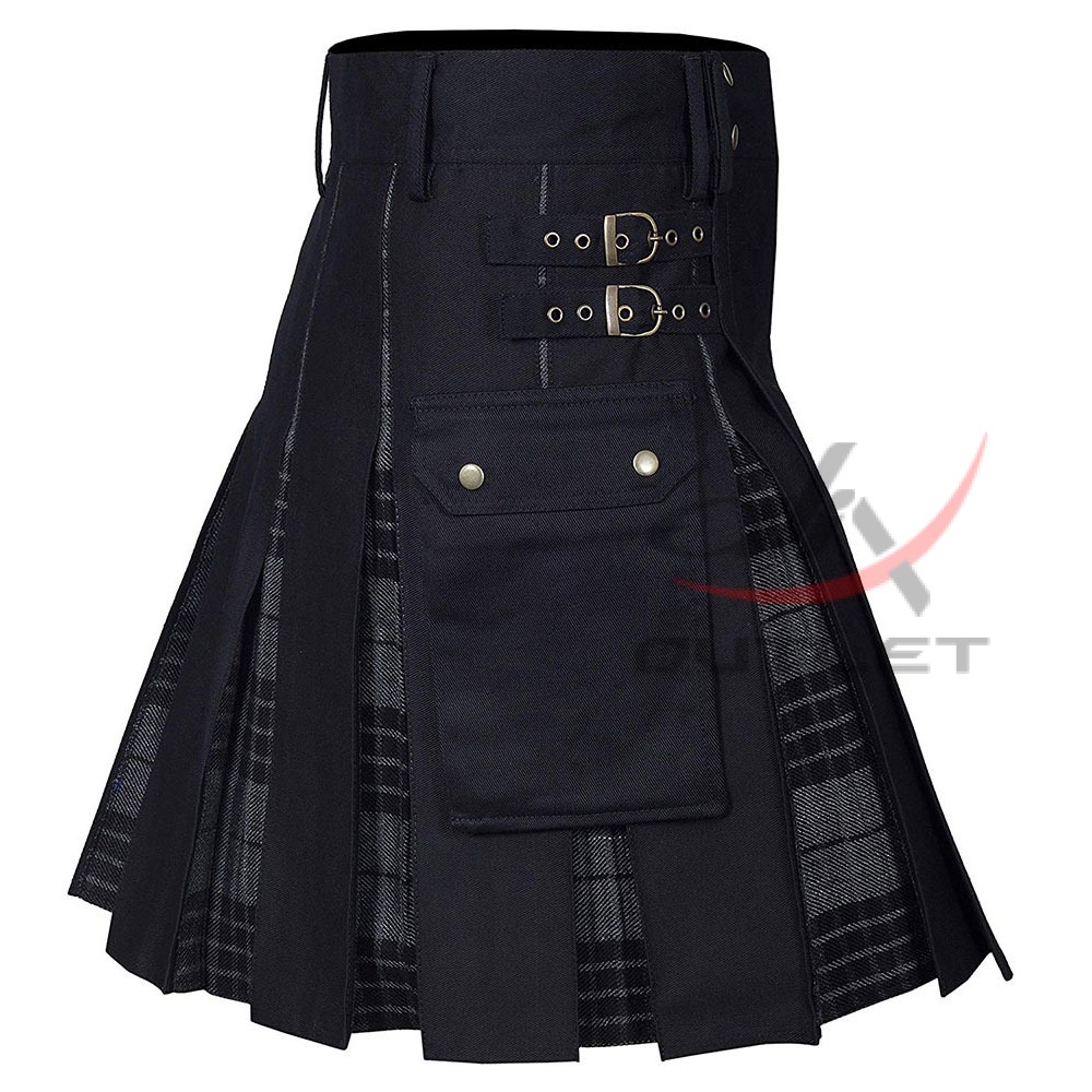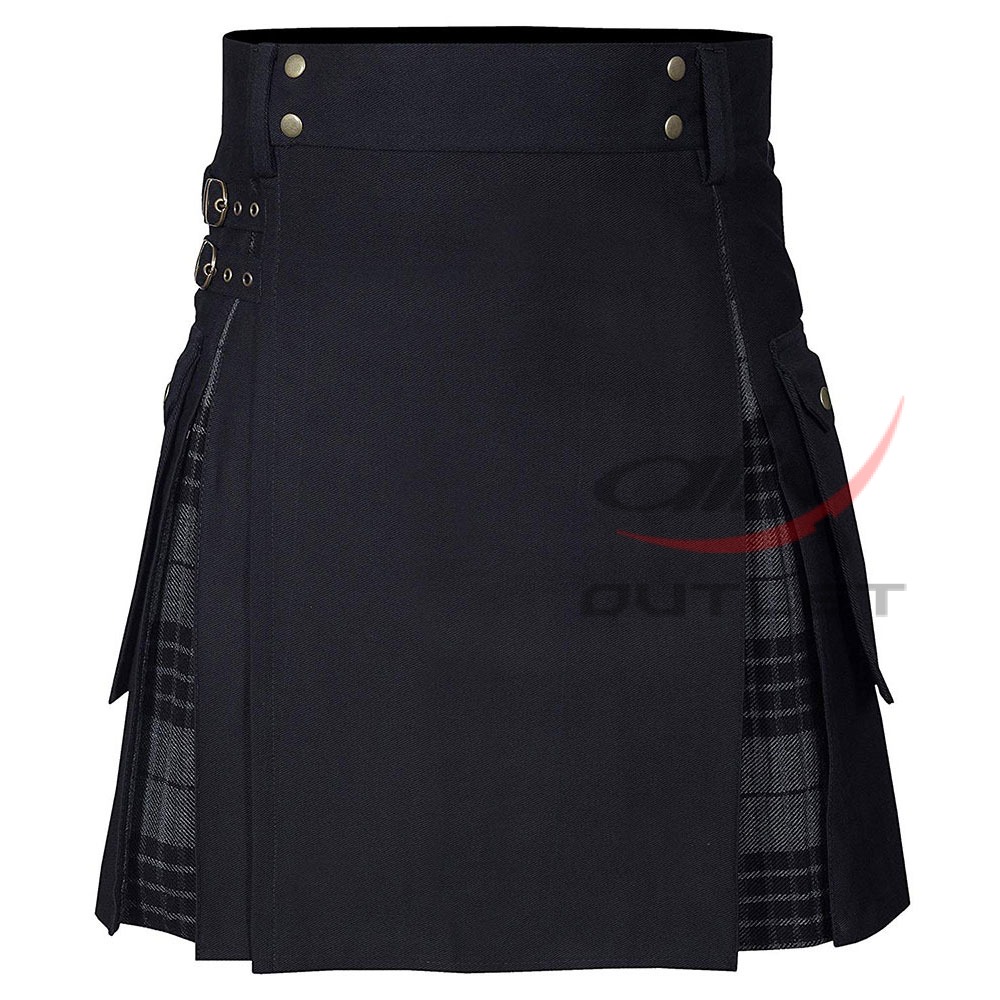 Hybrid Black Cotton & Gray Watch Kilt Utility