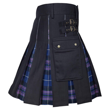 Hybrid Utility Kilts – Black Cotton & MacLeod of Lewis Tartan Kilt