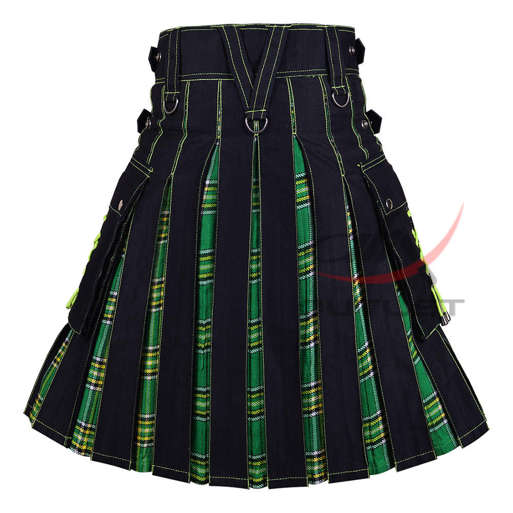 Hybrid Utility Kilts – Black Cotton & Irish Heritage Tartan Kilt