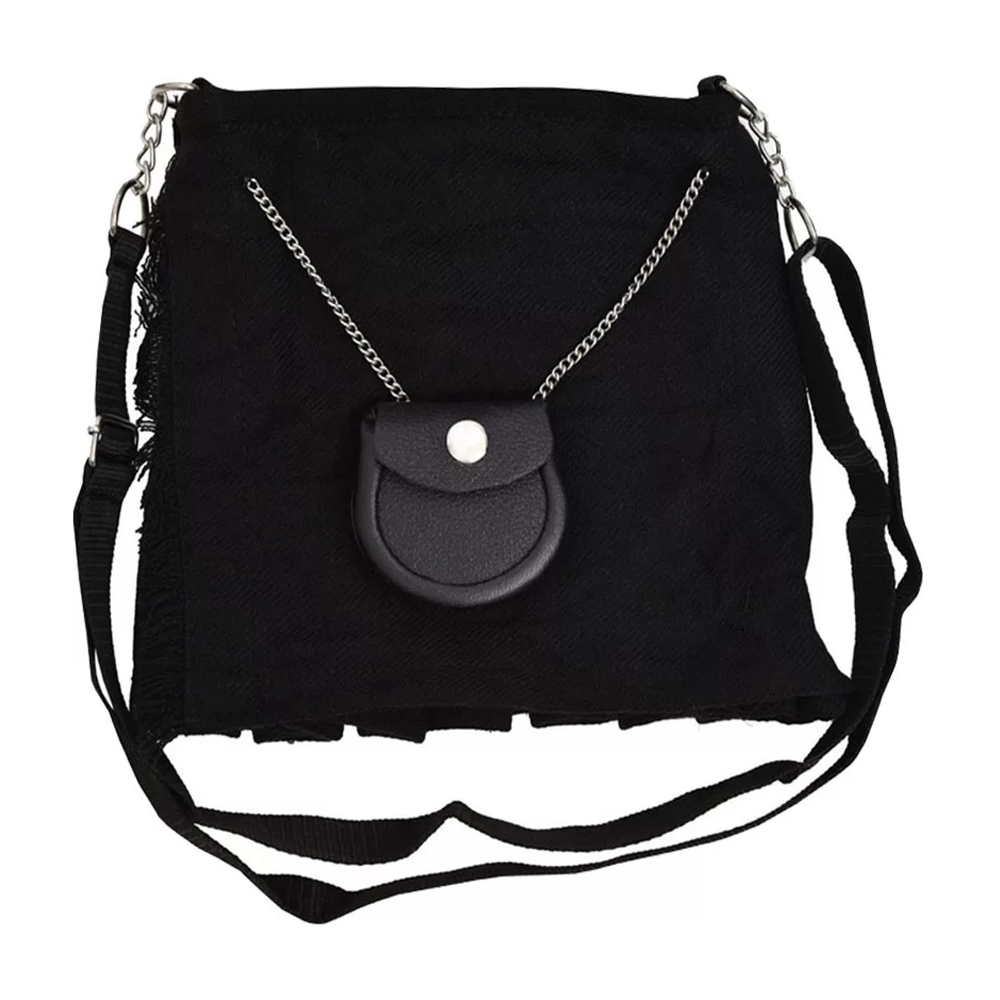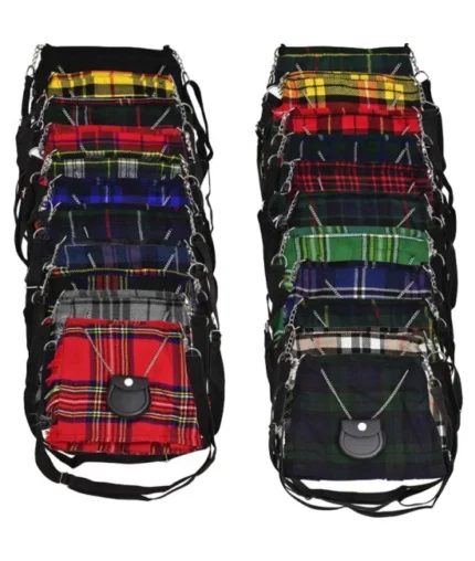 Ladies Purse Black Scottish Kilt Shaped Celebrate your Scottish heritage in style with this charming Scottish Tartan Ladies Kilt Shaped Purse. Expertly crafted to resemble a traditional kilt, this unique purse combines cultural flair with everyday practicality. Made from high-quality tartan fabric, it features classic pleating and decorative details like a miniature sporran flap, belt accents, and silver-tone hardware.