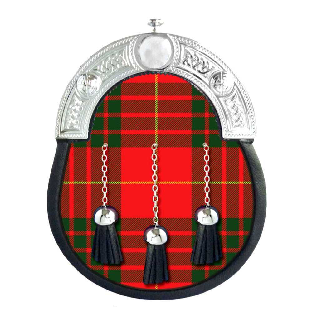 MacGregor Tartan Full Dress Leather Sporrans Introducing the Scottish Kilts Outfit Sporran, crafted from 100% genuine leather with a Celtic silver cantle and chain strap. This traditional Wallace Tartan kilt sporran bag embodies Scottish heritage and clan pride. The Black Watch Tartan Sporran is available in full-dress leather, featuring a customizable clan tartan on the front with three matching leather tassels. Made to order, this sporran combines premium-grade leather with a classic Scottish design, offering both value and durability. It’s an ideal accessory for both formal and informal events, perfect for those seeking quality and affordability.