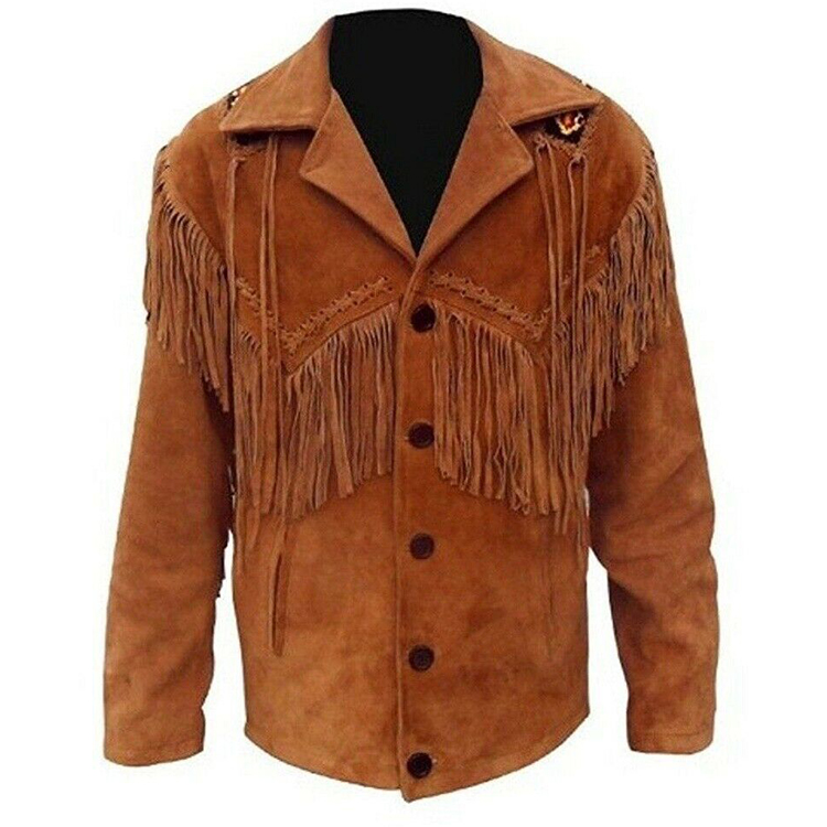 Men’s Cowboy Western Style Jacket Brown Step into classic western style with our Cowboy Suede Leather Western Jacket – a rugged essential for every modern cowboy. Made from high-quality suede leather, this jacket combines durability with timeless design. Featuring traditional fringe detailing, pointed yokes, and snap-button closures, it captures the true spirit of the Wild West. Whether you’re on the ranch or out on the town, this jacket brings bold attitude and authentic cowboy flair.
