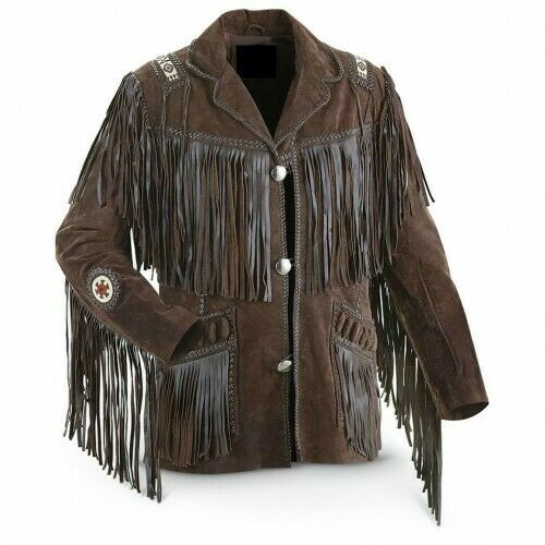 Men’s Western Style Cowboy Jacket Brown Step into classic western style with our Cowboy Suede Leather Western Jacket – a rugged essential for every modern cowboy. Made from high-quality suede leather, this jacket combines durability with timeless design. Featuring traditional fringe detailing, pointed yokes, and snap-button closures, it captures the true spirit of the Wild West. Whether you’re on the ranch or out on the town, this jacket brings bold attitude and authentic cowboy flair.