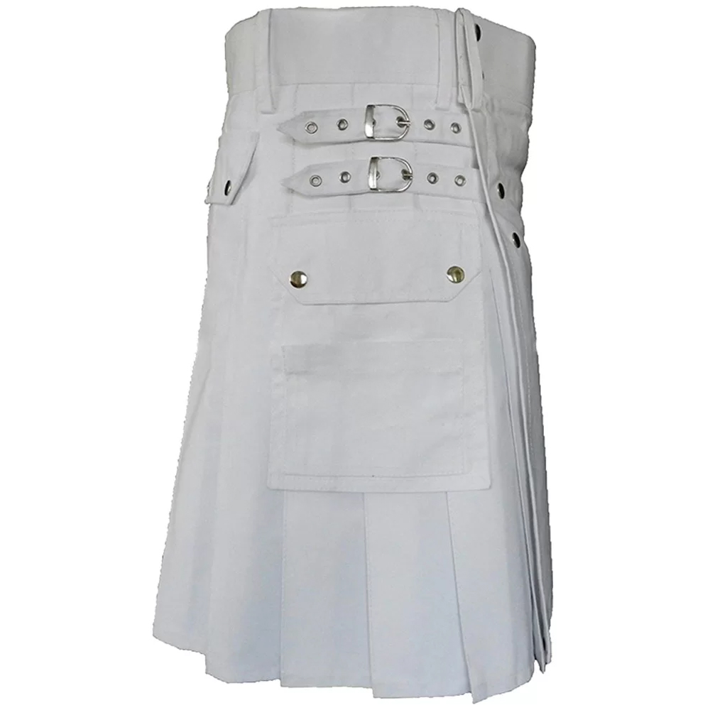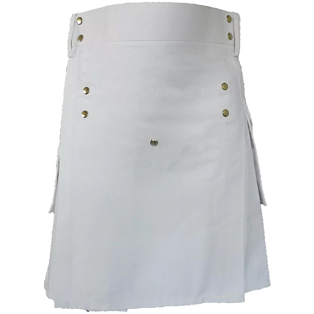 Men’s White Cotton Utility Kilt with Front Buttons