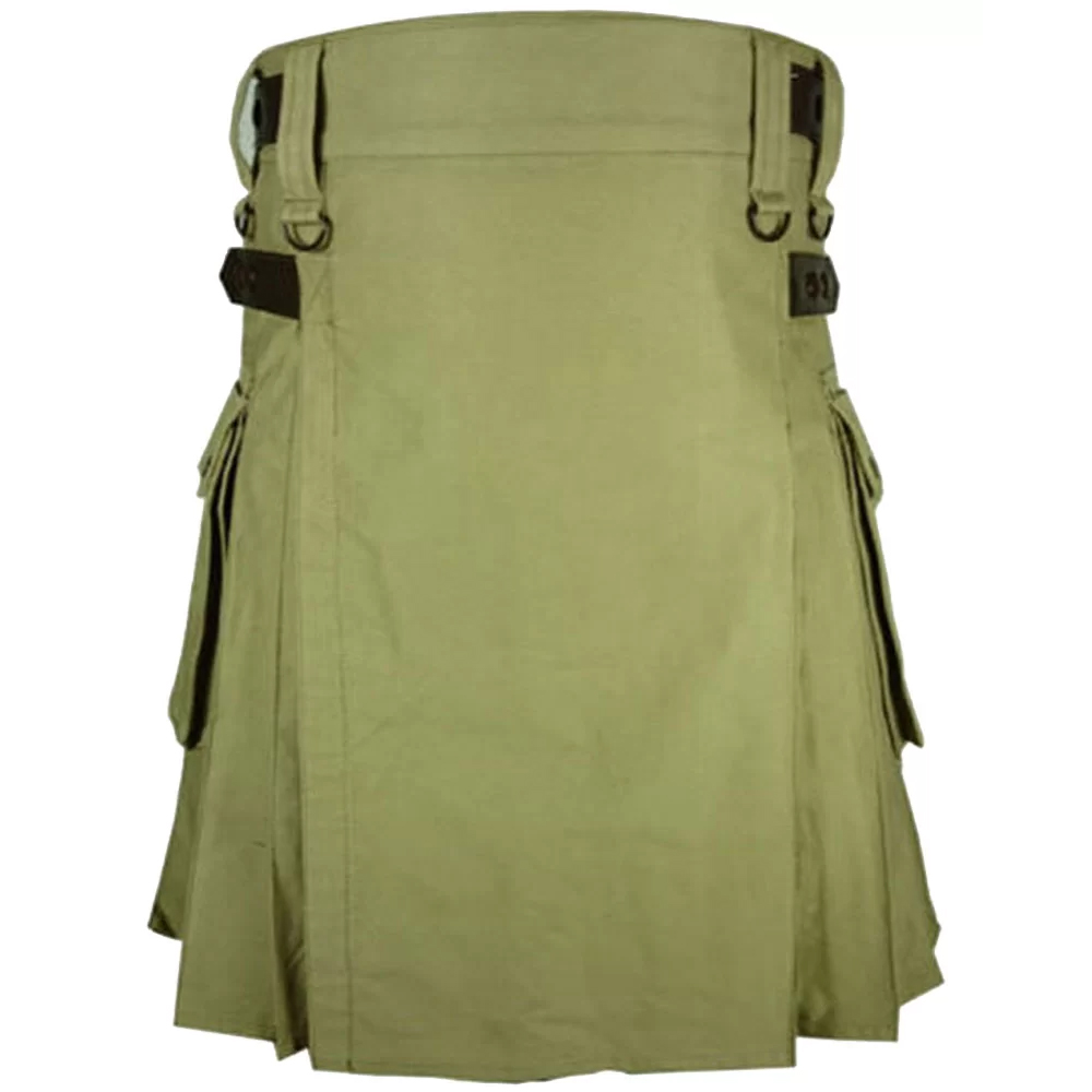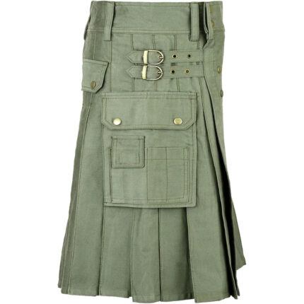 Olive Green Utility Cotton Kilt with adjustable Leather Straps – Comfort Meets Functionality