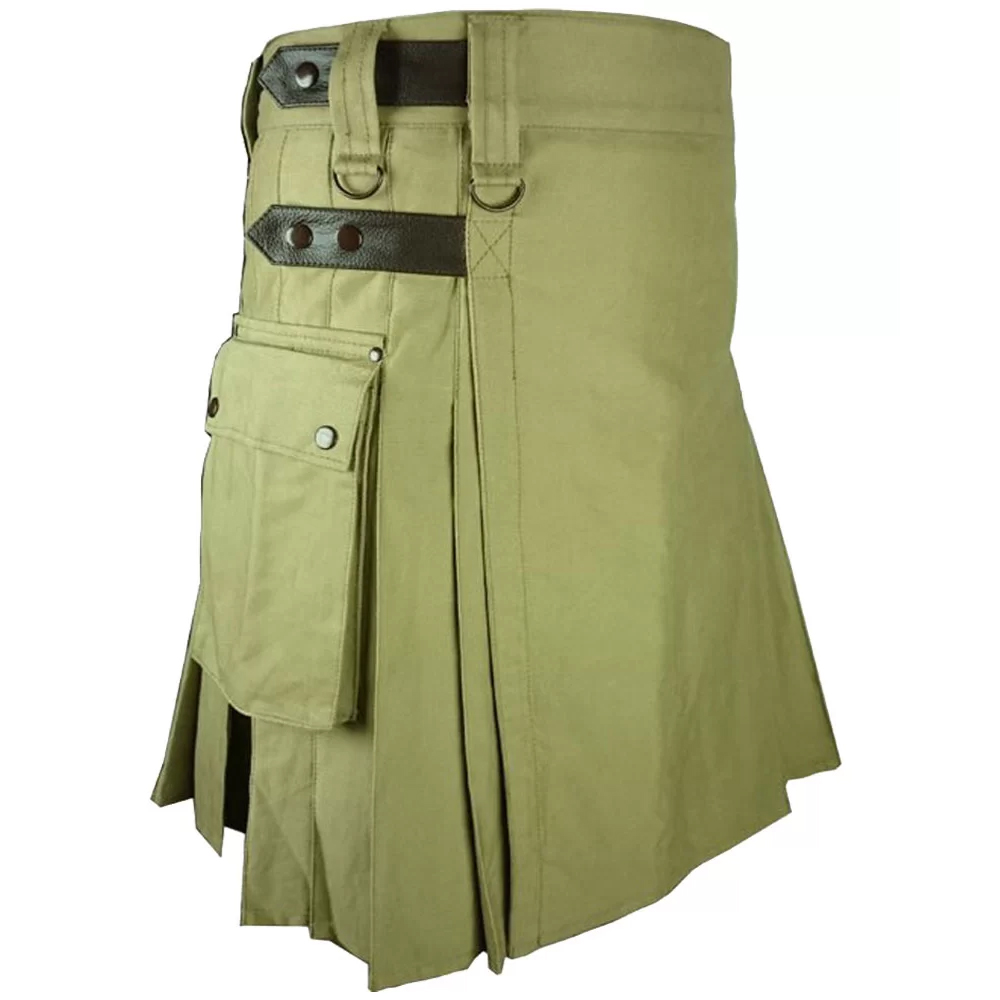 Olive Green Utility Cotton Kilt with adjustable Leather Straps
