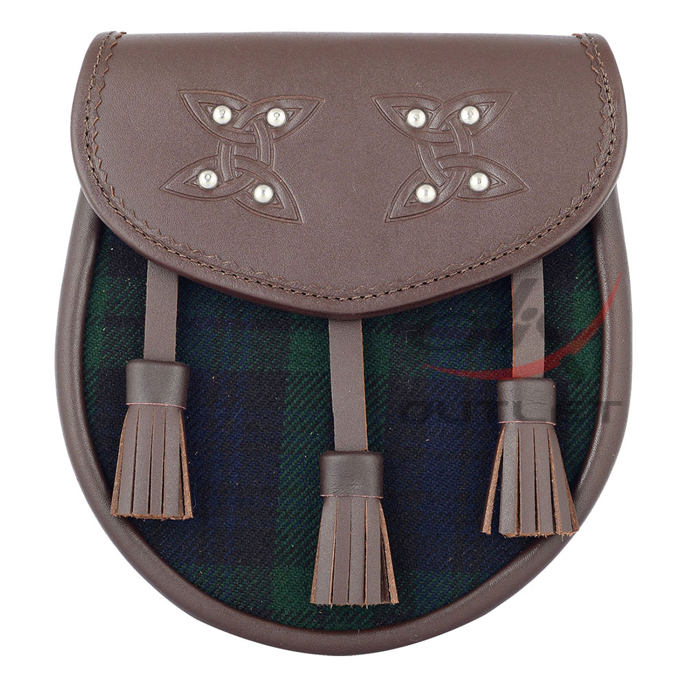 Scottish Sporran Black Watch Tartan Brown Leather