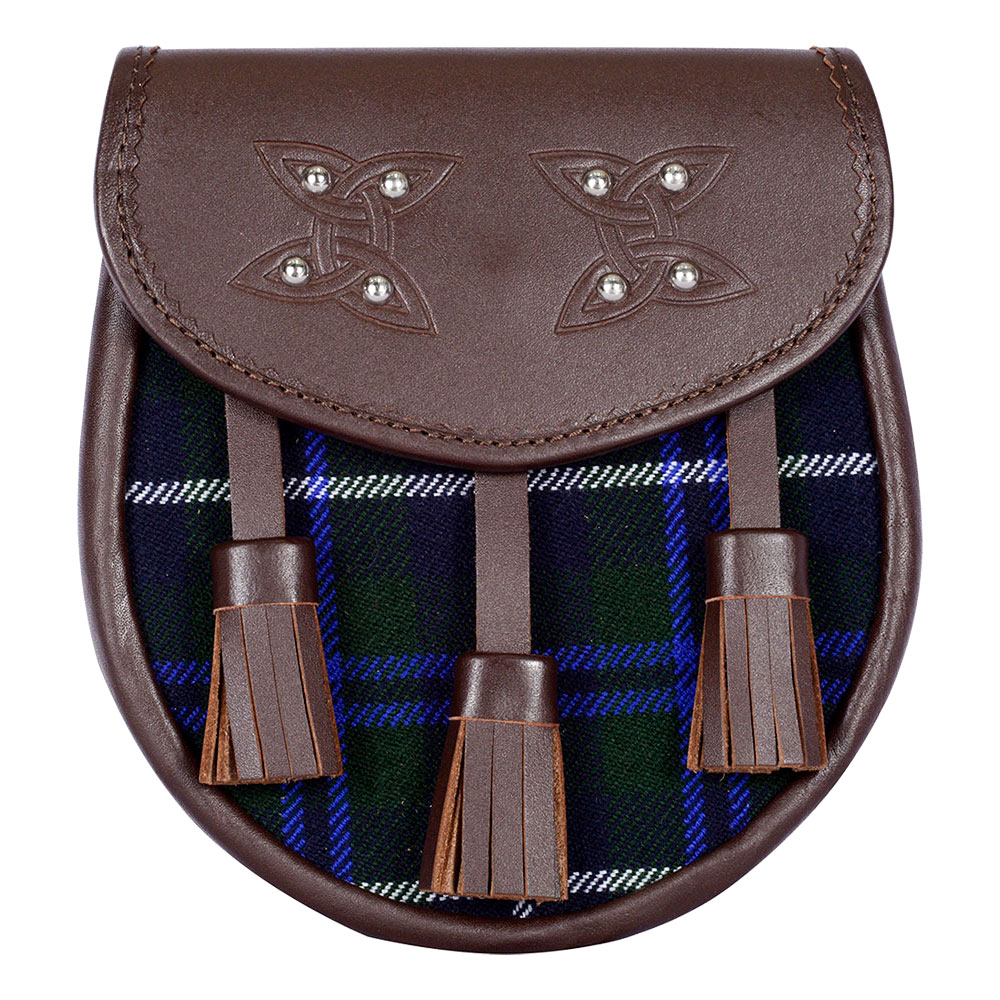 Scottish Sporran Blue Douglas Tartan Brown Leather