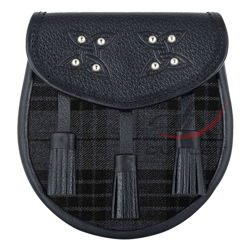 Scottish Sporran Grey Watch Tartan Black Leather