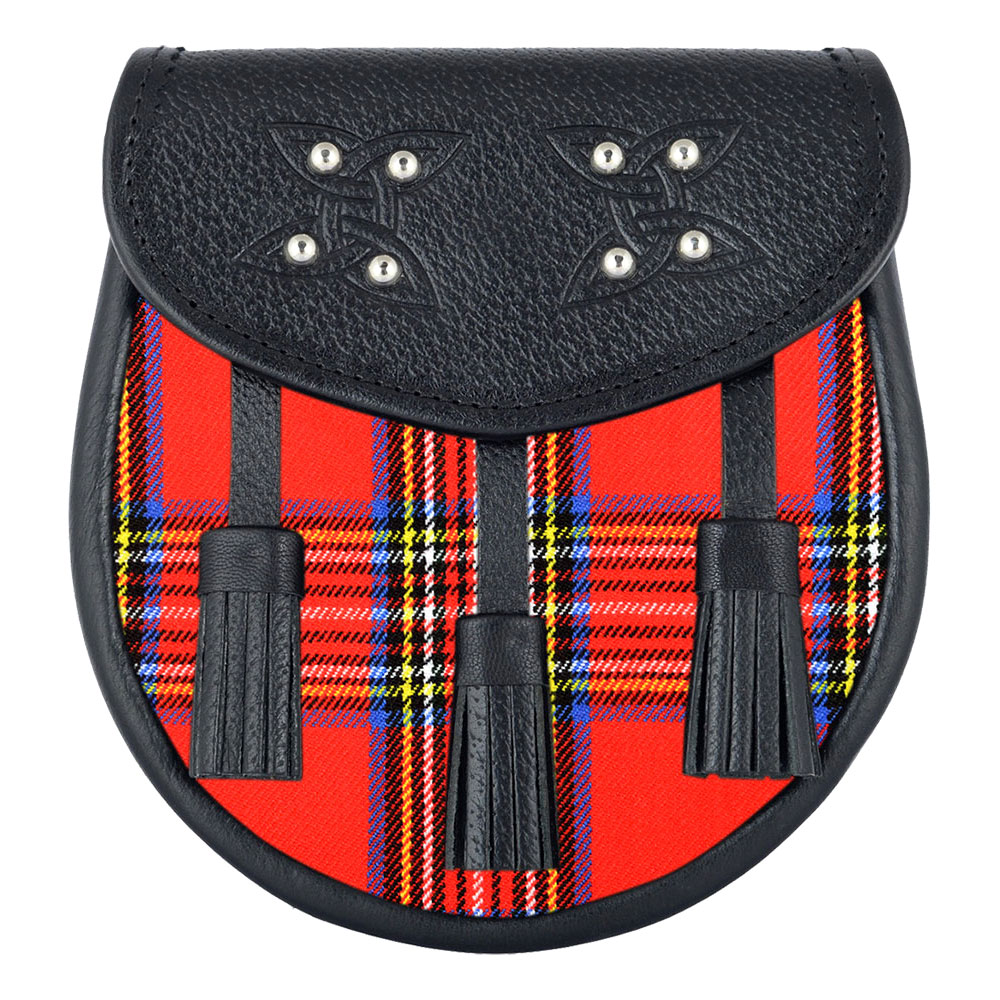 Scottish Sporran Royal Stewart Tartan Black Leather