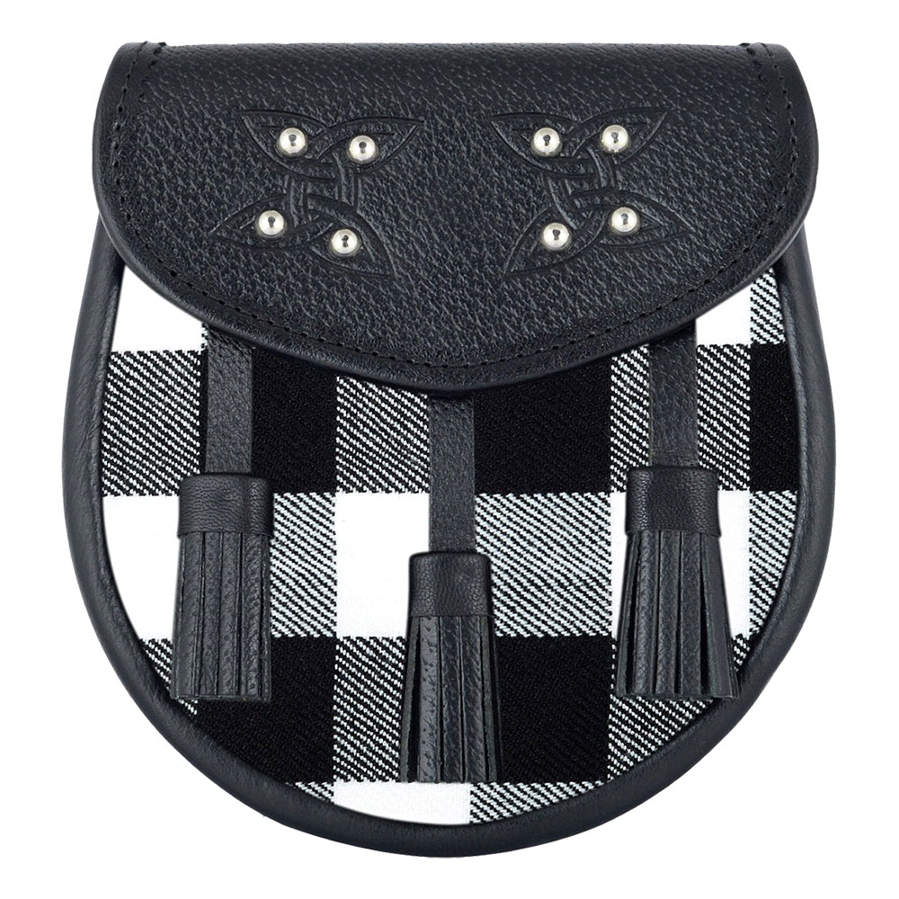 Scottish Sporran White, Black Rob Roy Tartan Black Leather