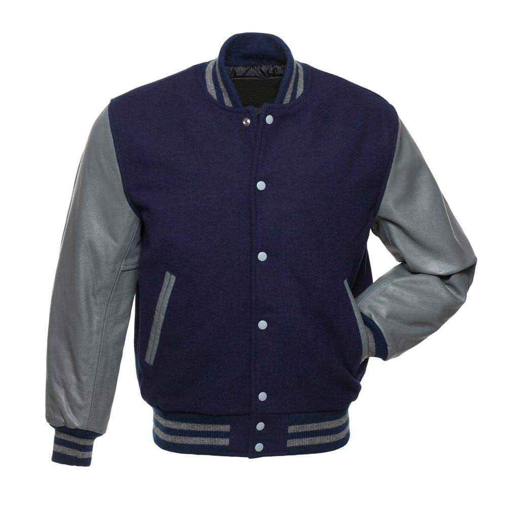 Varsity Jacket Navy Blue Wool & Leather Sleeves Letterman Baseball Jacket