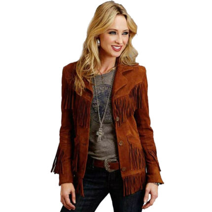 Western Style Suede Jacket for Her Saddle up in style with our Cowgirl Western Jacket – a timeless blend of rugged charm and feminine flair. Crafted from premium-quality suede leather, this jacket features classic western detailing like fringe accents, pointed yokes, and snap-button closures. Whether you’re headed to a rodeo, concert, or just channeling rustic chic on the streets, this piece delivers unmatched authenticity and comfort. Pair it with boots and denim for the ultimate cowgirl look.